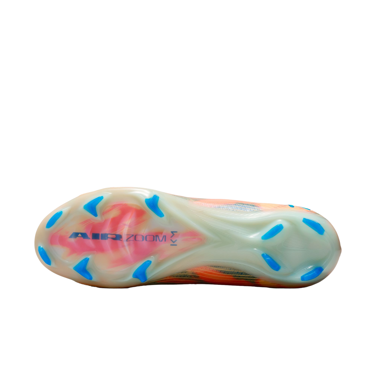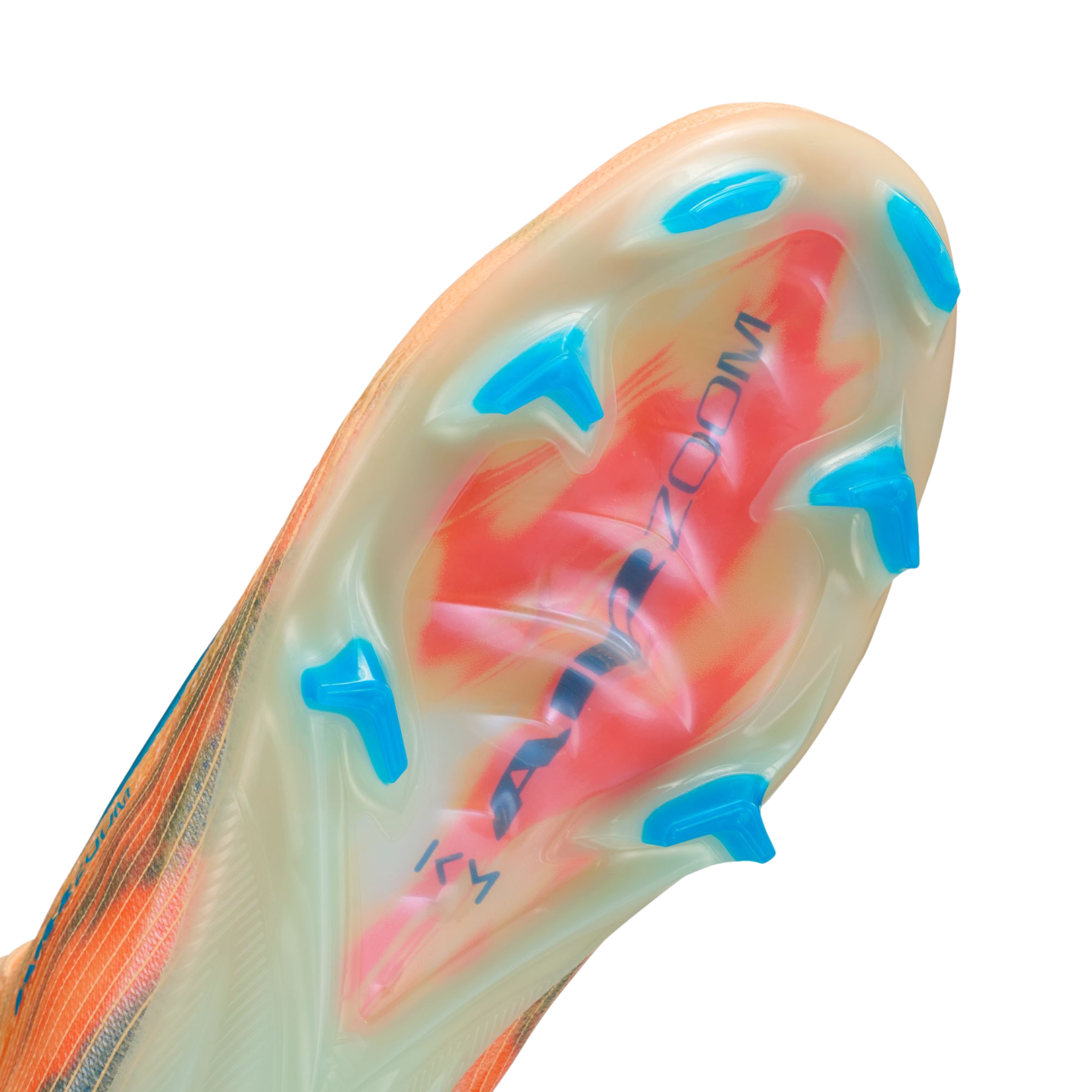 The wave-like traction pattern is a series of cascading studs, so it engages more surface area of the Air Zoom unit while also providing the appropriate amount of grip. The biggest stud is the same height as our traditional middle studs, so traction is not compromised. We paired the wave-like traction with evolved chevron and blade studs to help you stop when making quick cuts.