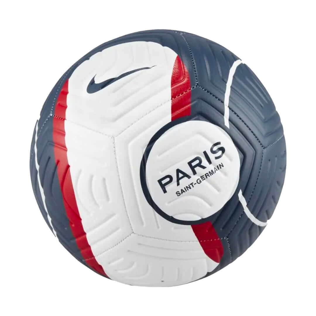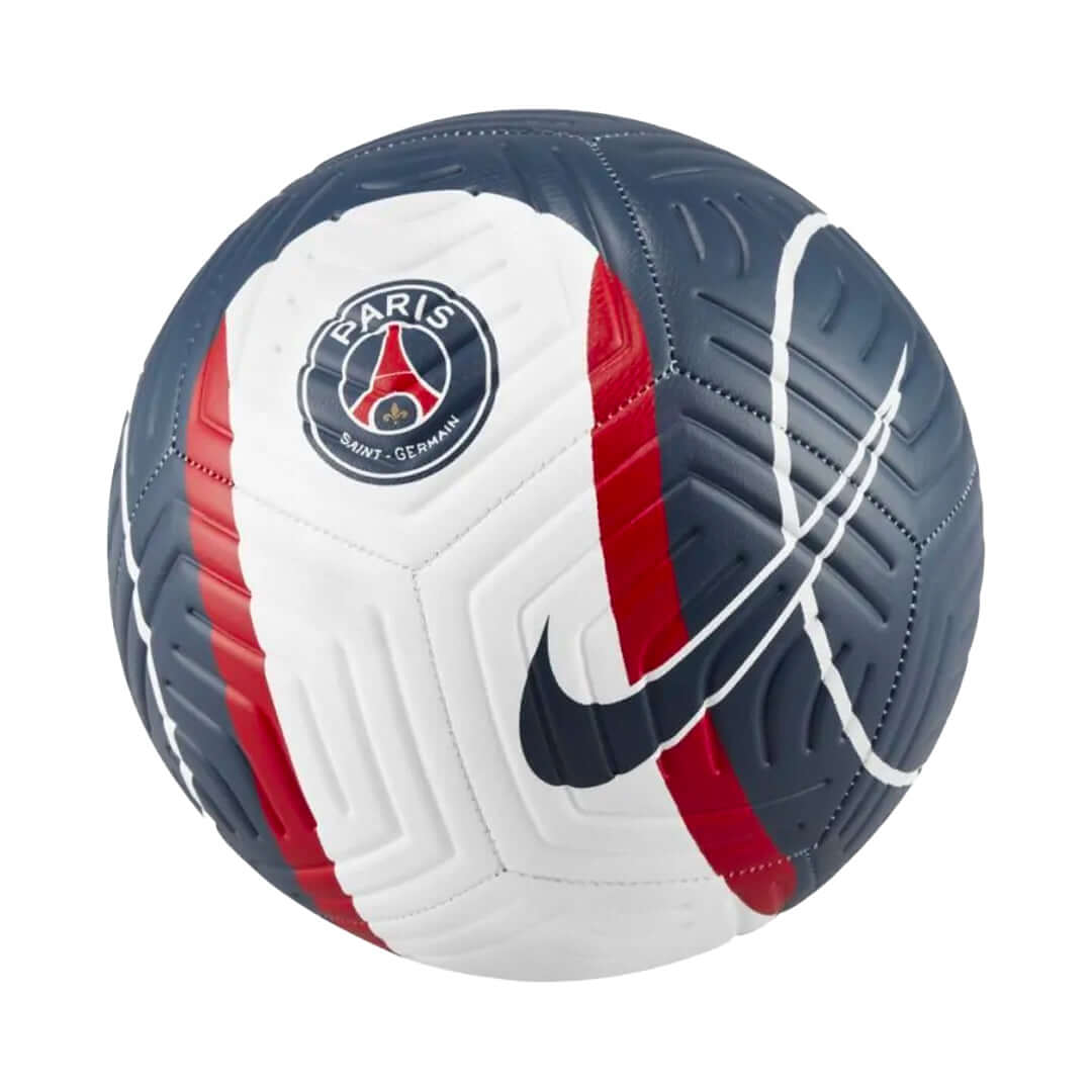 The Paris Saint-Germain Strike Soccer Ball is ready to fly into the back of the net. A textured casing and stabilizing grooves help you put the ball right where you want it.